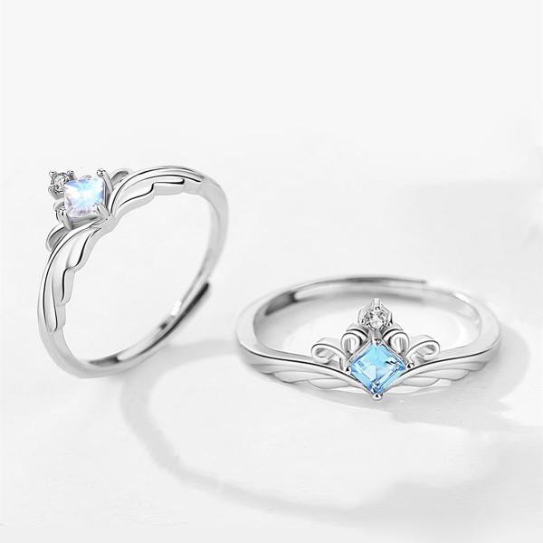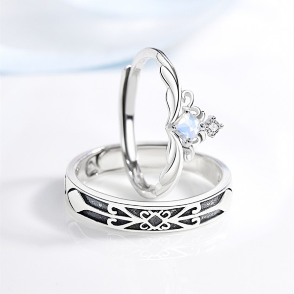 Original Design Princess And Knight Moonstone 925 Sterling Silver Promise Rings