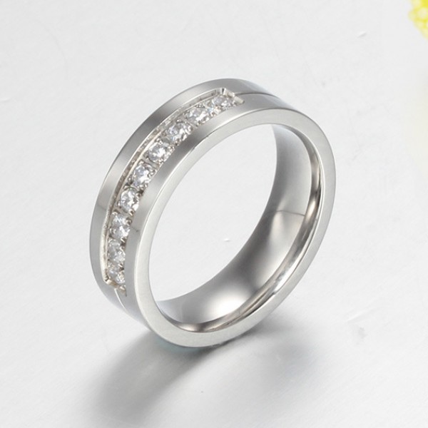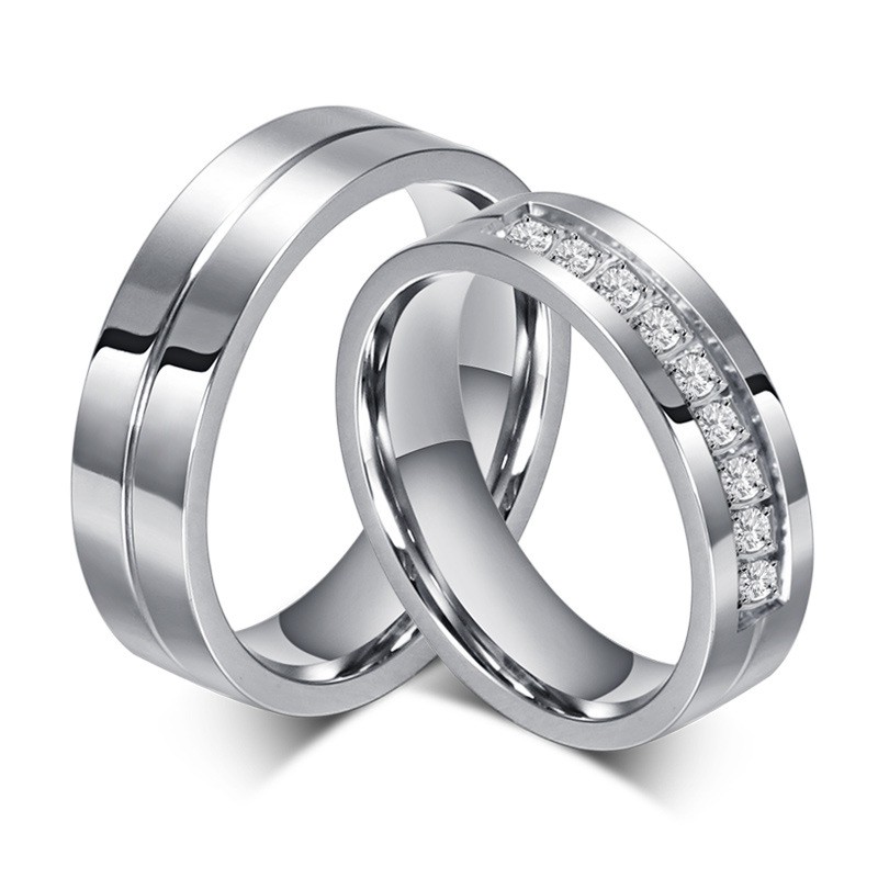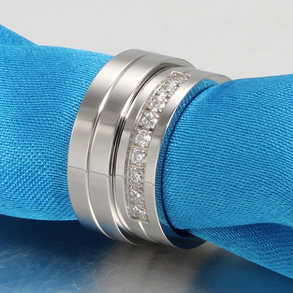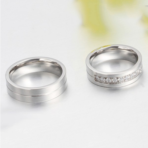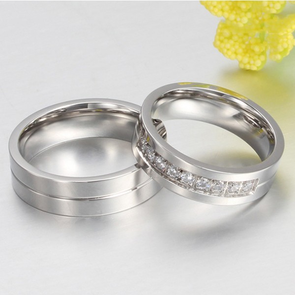 Korean New Stainless Steel Inlaid Cubic Zirconia Couple Rings